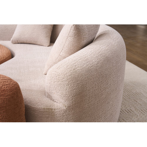 LY 042 S Curved Chenille Sectional Sofa Dual-Depth 21.3x 26.8, Beige, No Assembly, Compact For Small Spaces, 400 Lbs, 66.9 L
