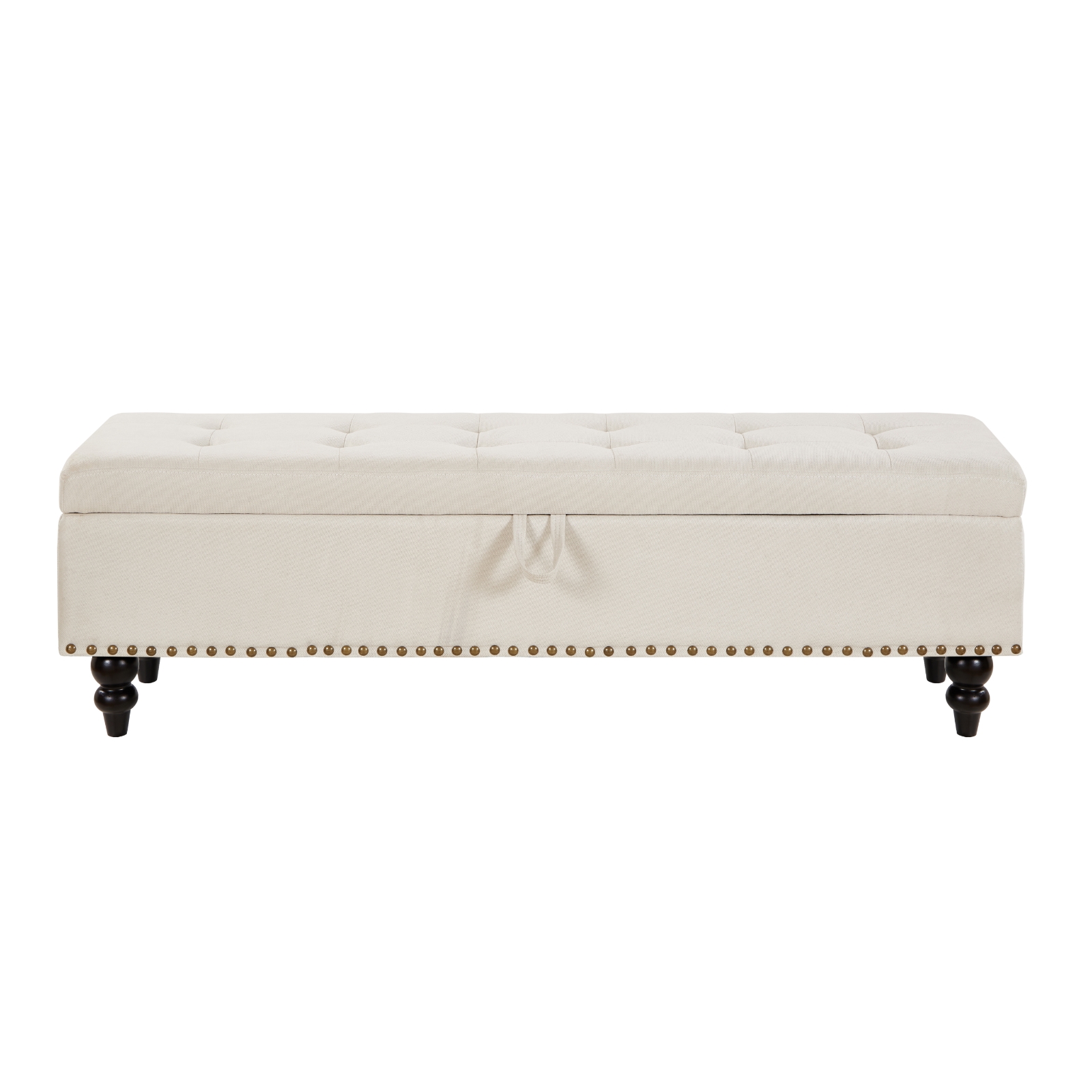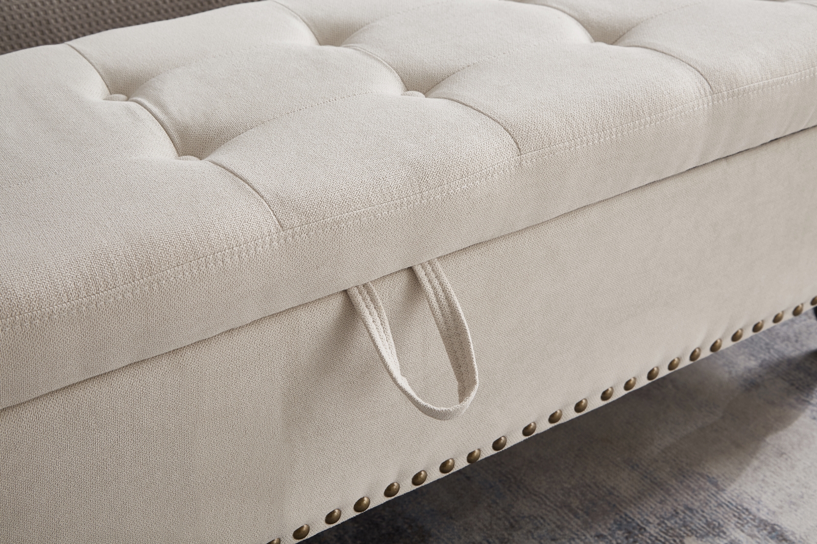 59 Bed Bench Ottoman With Storage Beige Fabric