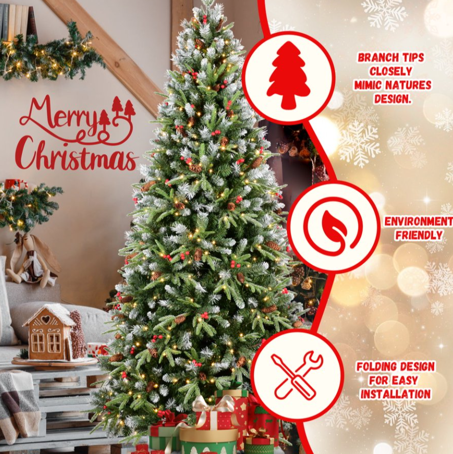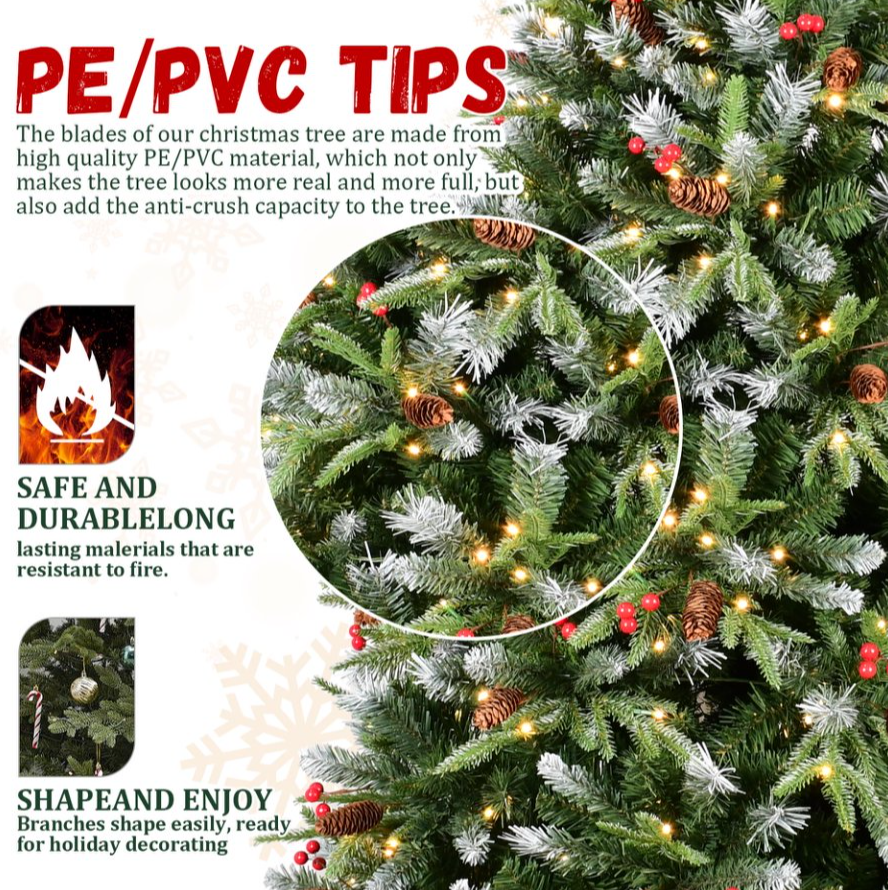 4ft PE PVC Tree Red Fruit 35pcs Pine Cone 35pcs