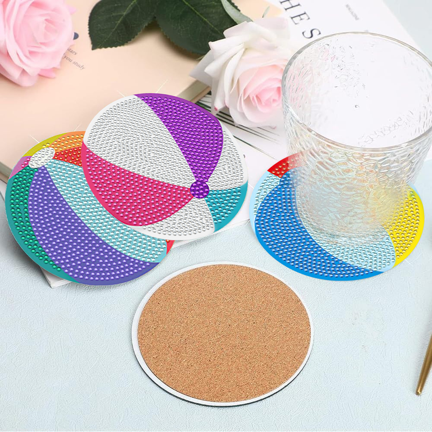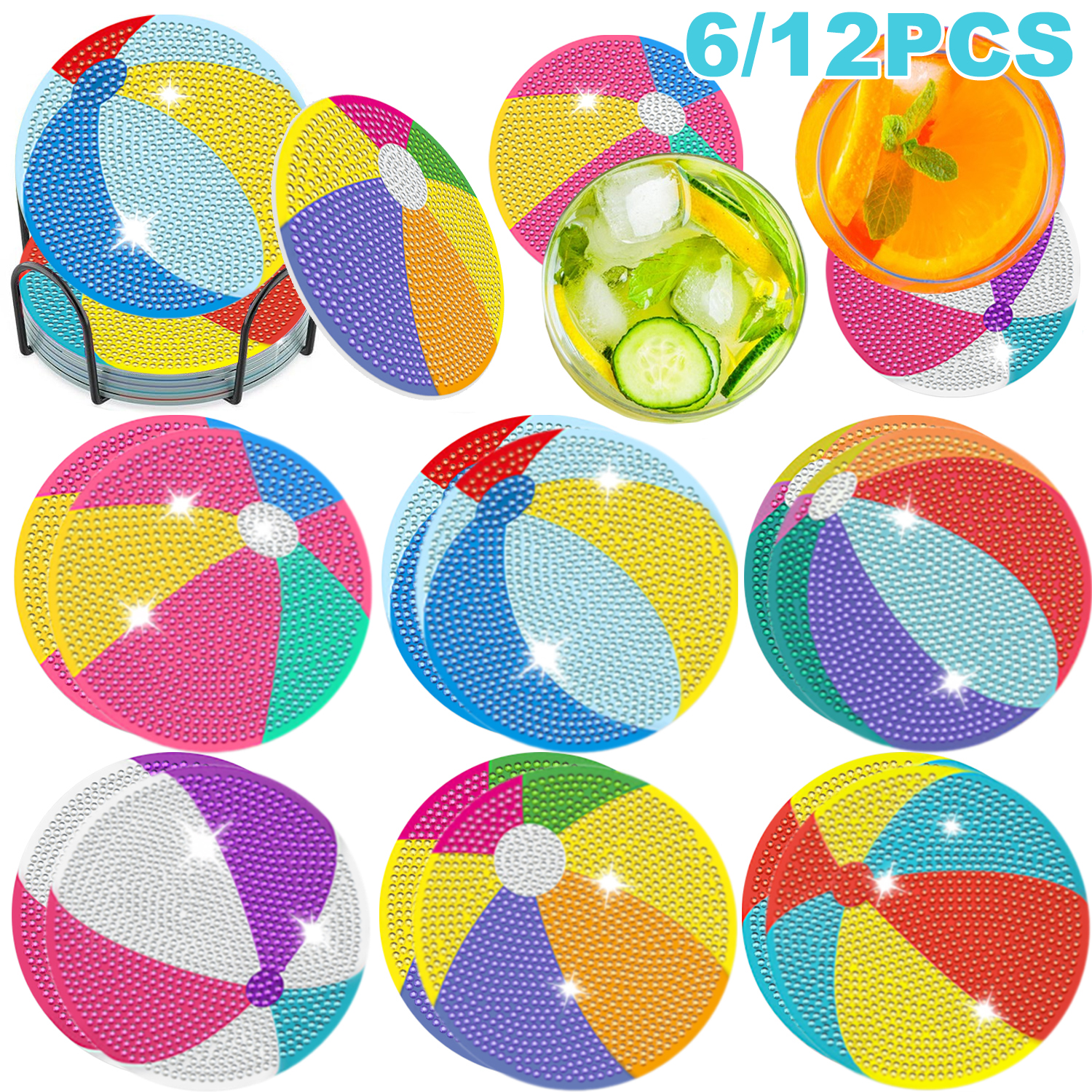 Package contents: 6 Pcs Beach Balls Style Rhinestones Art Coasters Kits