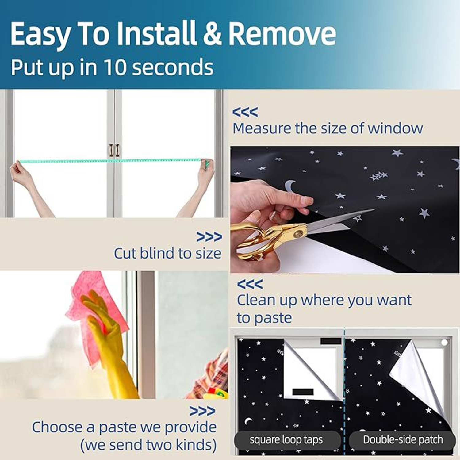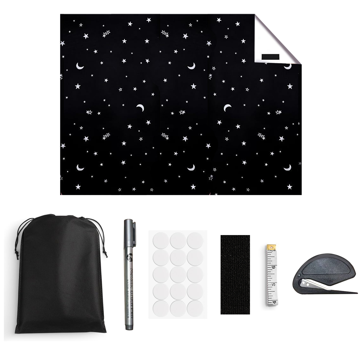 Package Contents: 100% Blackout Star Moon Curtains Set for Bedroom with Bag Loop Tape Strips Knife Ruler Pen