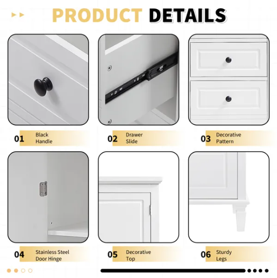 Home > Tall And Wide Storage Cabinet With Doors For Bathroom Office Living Room Indoor, Four Drawers Of Different Sizes, Adjustable Shelves, White