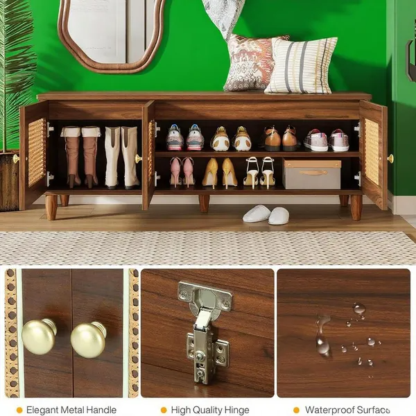 Breathable Rattan Doors: PVC rattan doors improve airflow to reduce odors and moisture, keeping shoes fresh and dry—ideal for daily family use or shared entryways