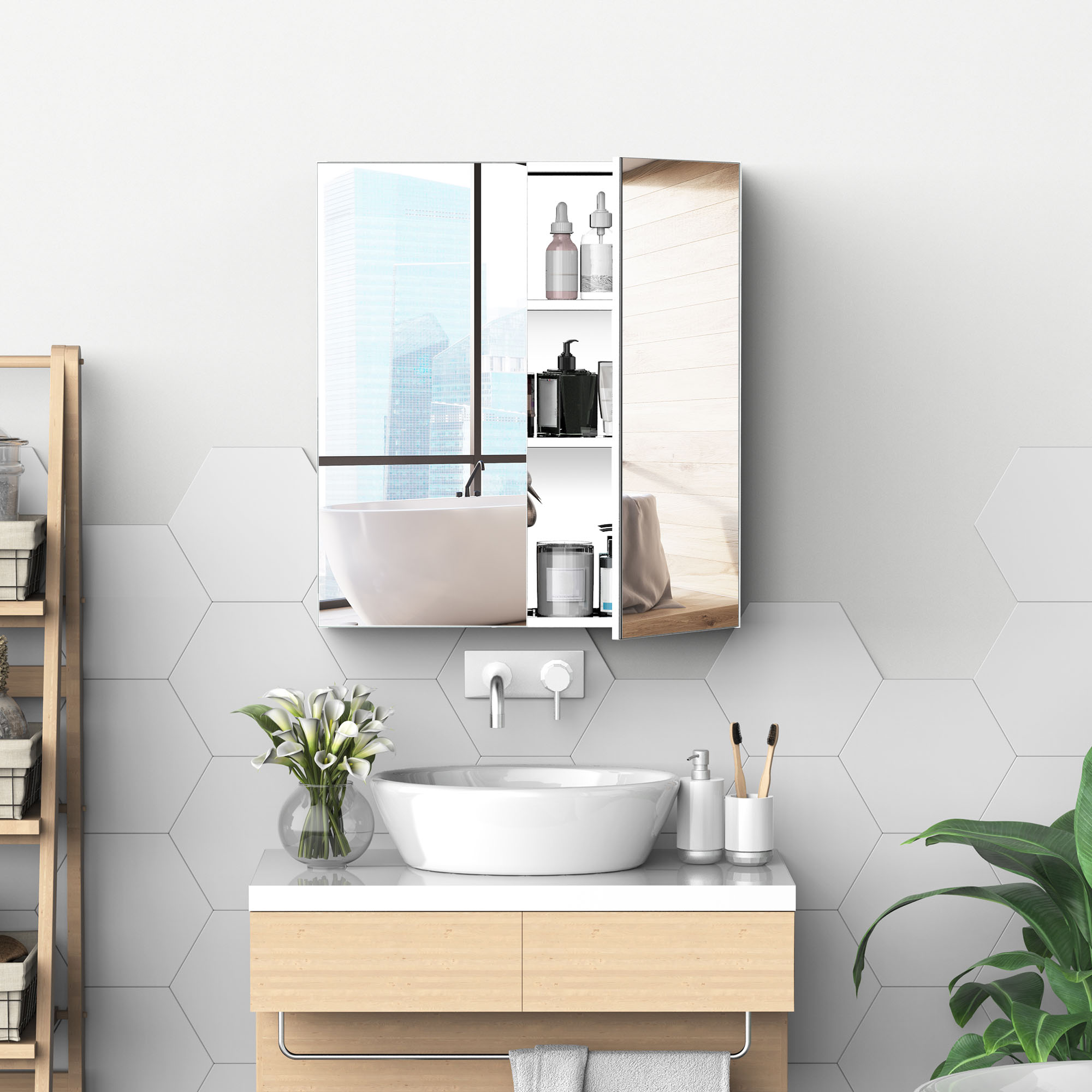 Kleankin Bathroom Medicine Cabinet With Mirror 3-Tier Stainless Steel Storage Silver