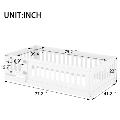 • Combining practicality and creativity: This floor bed adds a unique and playful feeling to the child's room. The arched fence design enhances safety while stimulating imagination and creativity. This affordable bed integrates sleep and decoration, creating a multifunctional space that children will love.